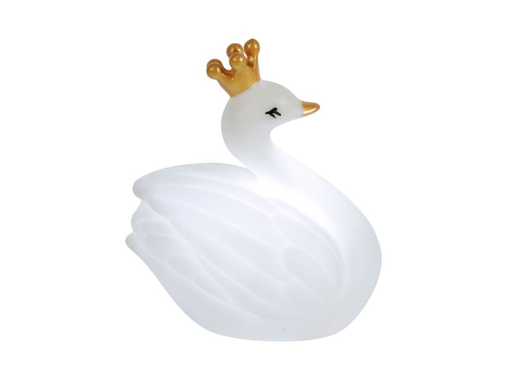 Dětská dekorační lampička ve tvaru bílé labutě s korunkou bude originální dekorací každého dětského pokoje a stane se příjemným světýlkem k večernímu čtení pohádkových knížek i k usínání. Bezpečně zažene všechna strašidla a zbaví tak děti strachu ze tmy. Lampička pomůže dotvořit příjemnou atmosféru dětského pokoje. Světelná dekorace nadchne malé a velké i jako dárek. Hodí se nejen do dětského pokoje, ale třeba i do ložnice. Světlo s bílou labutí má velmi elegantní vzhled.