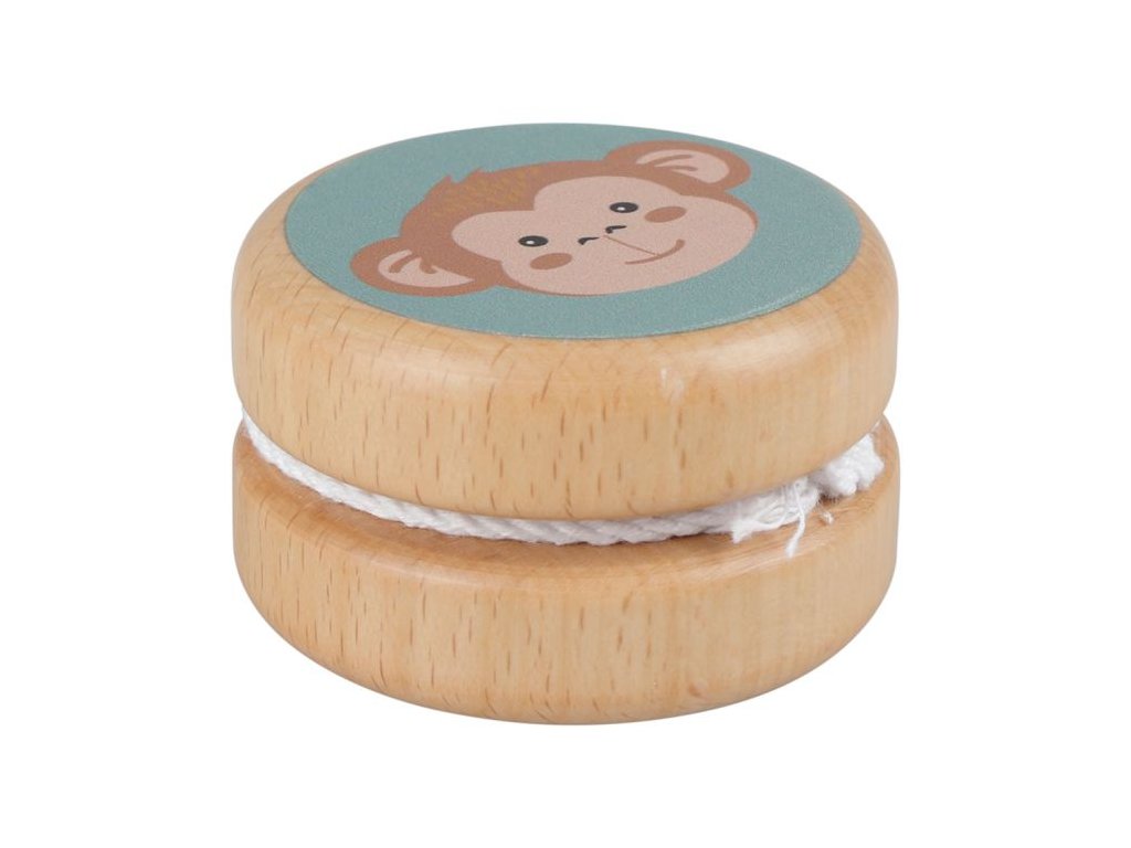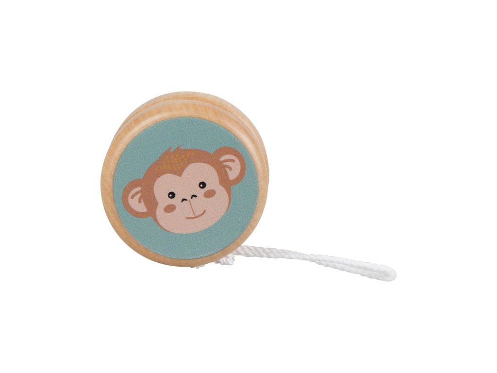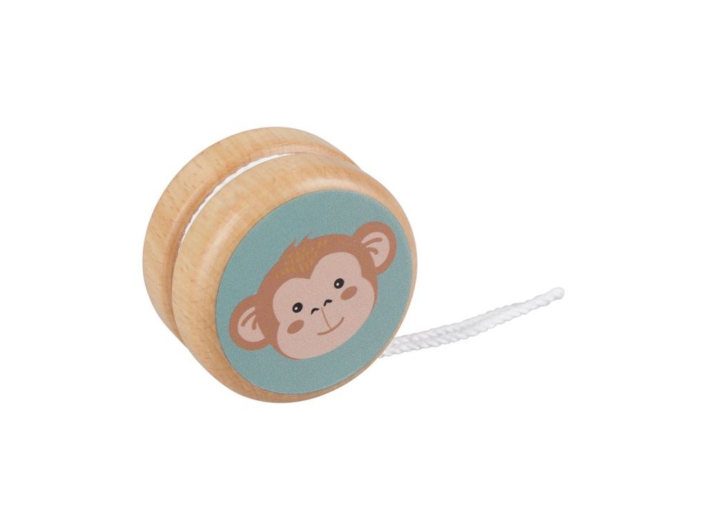 Dřevěné JoJo s obrázkem opičky je oblíbenou nostalgickou hračkou dětí i dospělých. Dřevěné JoJo se skvěle drží v ruce. Hračku tvoří 2 stejně velké a stejně těžké disky propojené osou a okolo ní je omotaný provázek. Na konci provázku je smyčka a správně se navléká na prostředníček. Tradiční hračka dokonale ovlivňuje koordinaci očí a rukou a podporuje u dětí přesnost každého pohybu. Rozvíjejte u děti hravě jemnou motoriku, trpělivost i schopnost soustředění. Bude je to bavit.