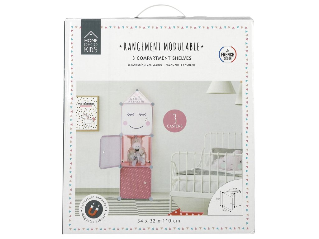 Dětská modulární skříň Little Princesse od francouzské značky Home Deco Kids je určena všem malým princeznám. Kombinace růžové, bílé a šedé barvy bude dokonale ladit s dívčím stylem pokojíčku. Skříň je vyrobena z odolného a pevného plastu, a police se dají libovolně přestavovat. V případě nečistot ji můžete otřít vlhkým hadříkem. Lehký a stabilní design umožňuje přepravu skříňky na libovolné místo.